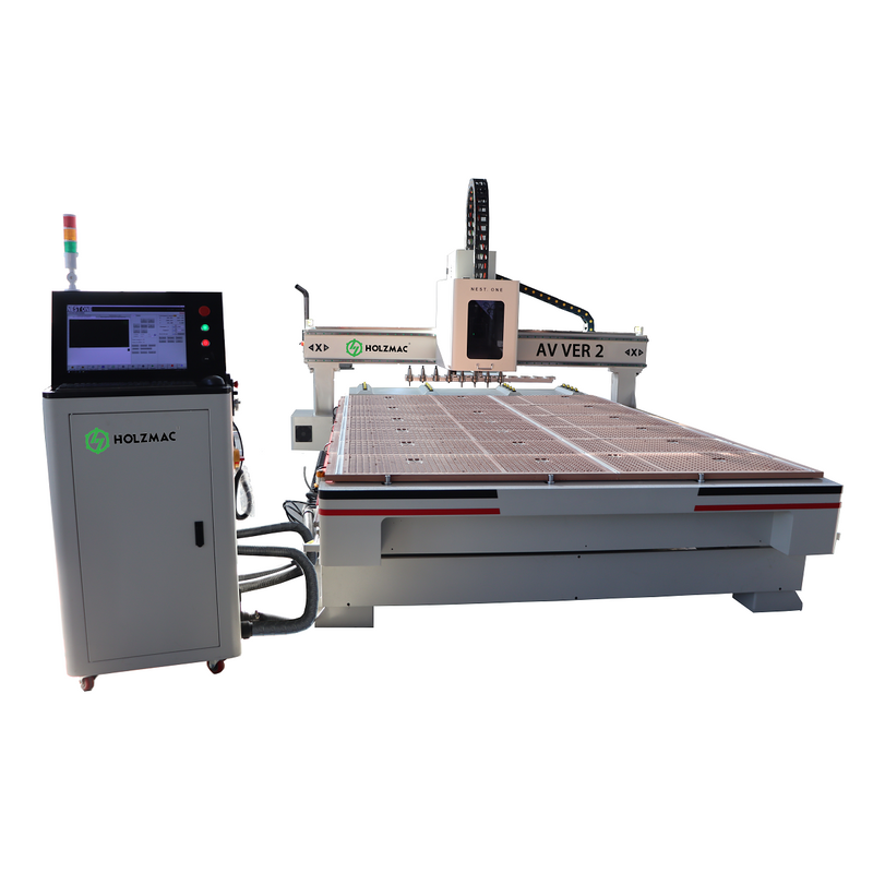 The AV VER 2 Pro CNC Router is a high-performance woodworking CNC machine, focusing on precise wood processing and efficient production. It can implement various heavy-load woodworking processes such as carving, cutting, and grooving. Supported by a vacuum adsorption table and multiple sets of positioning cylinders, it can firmly fix workpieces of different specifications. Equipped with a tool length sensor and automatic detection and compensation function, it ensures processing accuracy. Through a high-power spindle and servo drive system, it supports high-speed and stable mass production operations.
